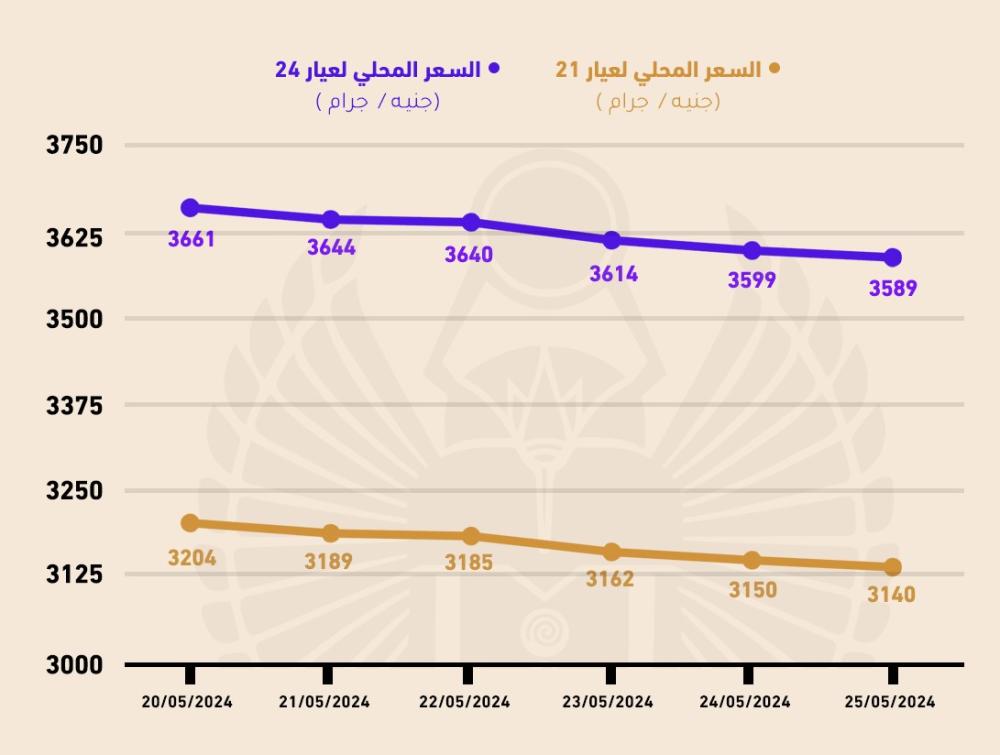 أنهى عيار 21 تعاملات السبت أخر جلسات الأسبوع في السوق المحلي; ليسجل متوسط سعر الجرام 3140 جنيه انخفاضا من 3204 جنيها في بداية الأسبوع، وسجل عيار 24 نحو 3599 جنيه للجرام مقابل 3661 جنيها في بداية الأسبوع، مع هدوء الأسواق تزامنا مع عطلة البورصة العالمية الأسبوعية