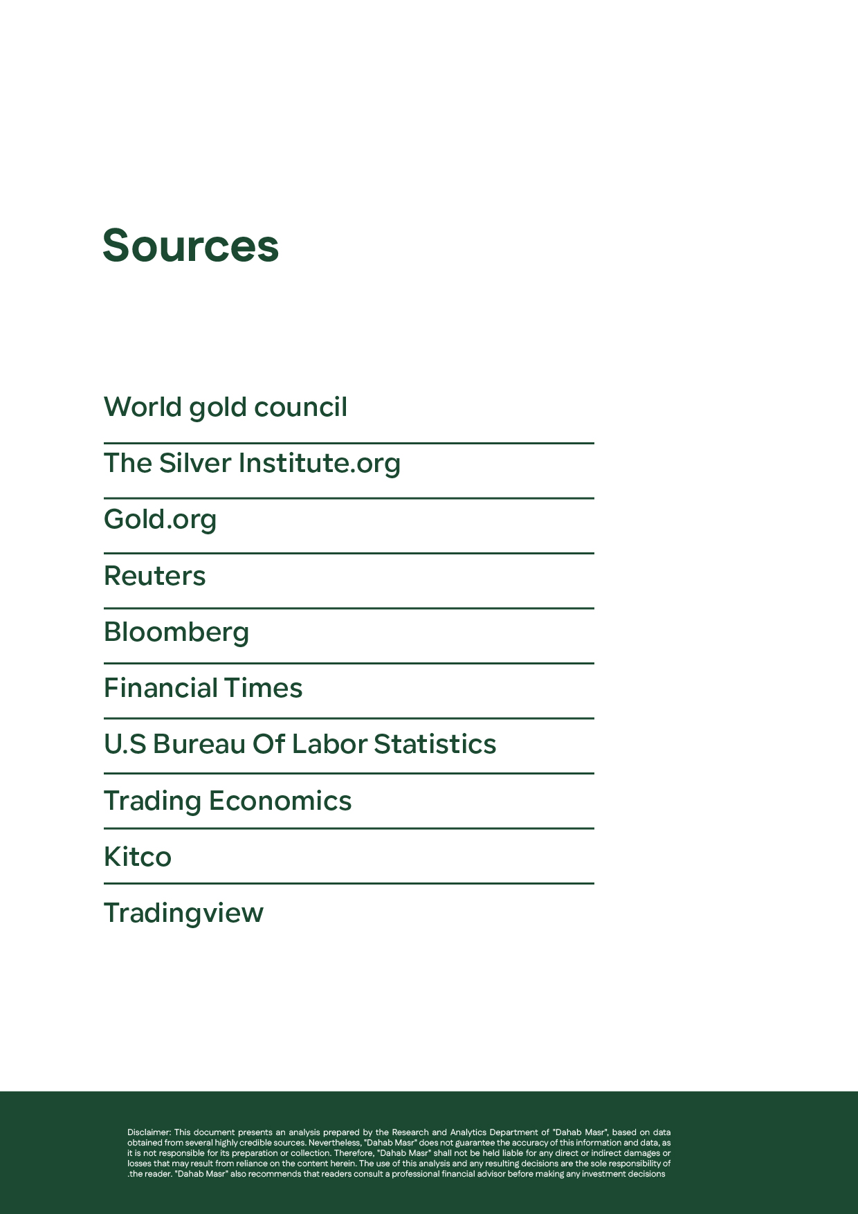 The gold price ended the week at $3,643/oz after touching a ~$3,675 high, up 1.6%. Silver prices closed at $42.17/oz (+2.94%), with intrawEEK peaks near $42.46. In Egypt, 21K gold hit EGP 4,946/gram for the first time since January 2025. Key drivers included expectations of a near-term Fed rate cut, weaker U.S. macro readings, and increased long-term allocations into gold ETFs. Markets also watched remarks from Fed officials (Waller, Barkin, Logan, Williams), revised Q2 GDP on Thursday, and July PCE on Friday—events shaping the policy path. Technically, gold faces resistance at $3,655–3,675–3,700 with support at $3,620–3,600–3,580, suggesting bullish continuation unless supports break.
